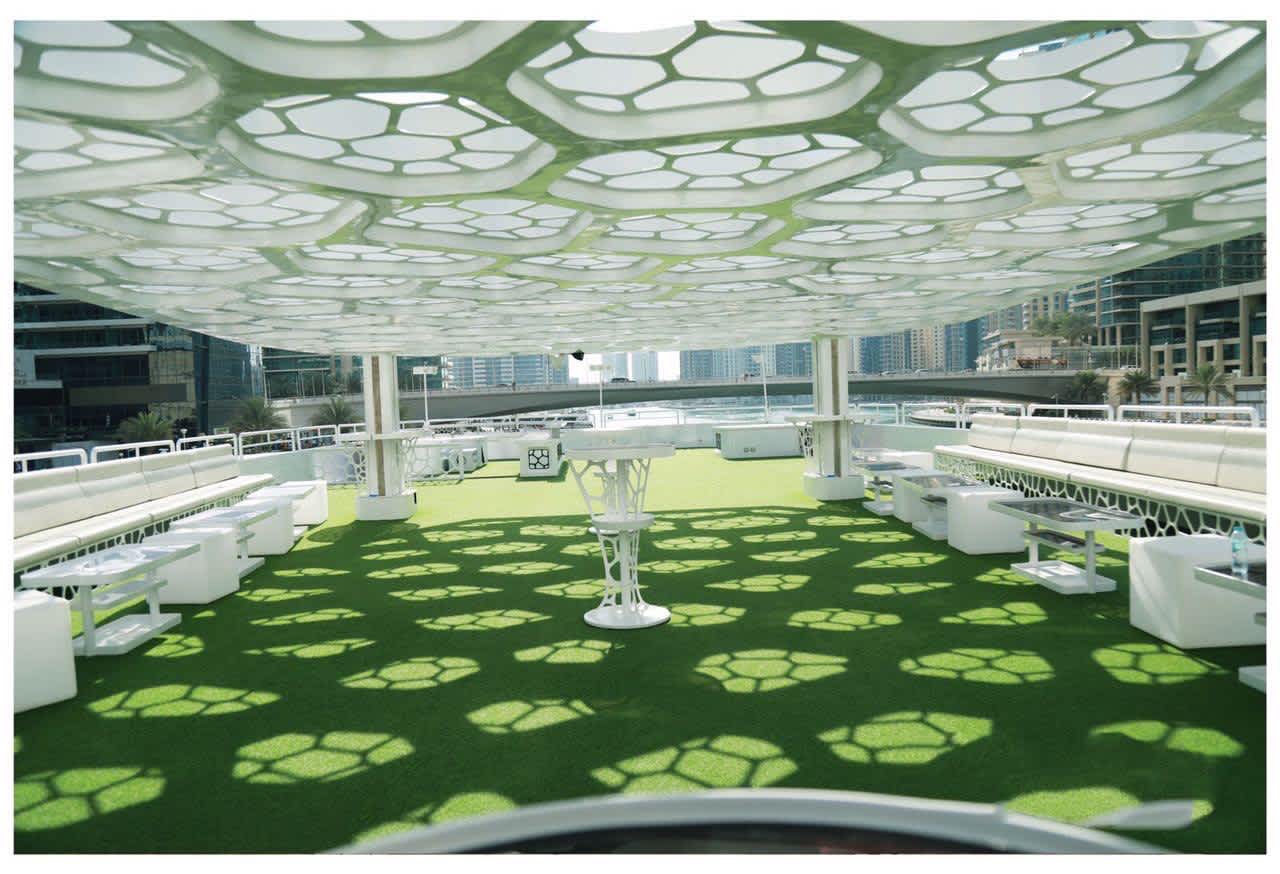 Experience a memorable brunch and the mesmerising views of Dubai as you take advantage of the deluxe swimming pool, Jacuzzi and shower rooms. It has a spacious lounge that can hold 500 guests, and can be transformed into a floating party venue with exclusive lights, a high-end stereo system and unbeatable views. It has multiple entertainment zones, chill lounge, party deck, cinema and what not.
